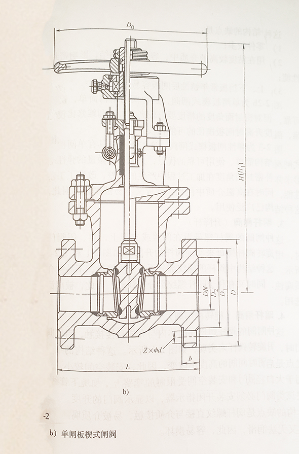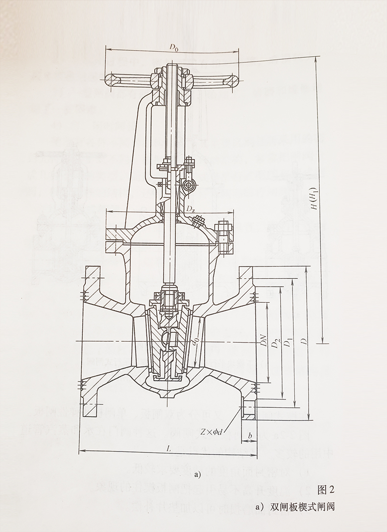 圖2-2b為單閘板楔式閘閥,這種閥門結構簡單,使用可靠,但對密封面角度的精度要求較高,加工和維修比較困難,溫度升高時閘板楔住的可能性較大。