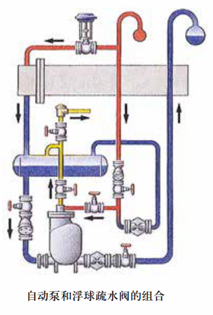 在有溫度控制以及冷凝水回收的應用中,往往還要求使用破真空器,機械泵與疏水閥的組合,或自動疏水閥泵,才能正確的將冷凝水排出。