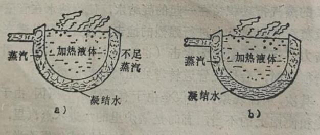 蒸汽疏水閥用蒸汽做功的蒸汽設備(特別是熱交換器等間接加熱的裝置),都是為了有效的利用蒸汽(飽和蒸汽)的潛熱。在這些裝置內滯留過多的凝結水與加熱面進行接觸,妨礙了蒸汽與加熱面接觸,使熱交換器等蒸汽使用設備的產生效率顯著降低(參照圖2)。另外,設備上、下加熱不均勻也會影響產品質量,使蒸汽使用設備的運轉效率顯著降低,設備性能也會降低。