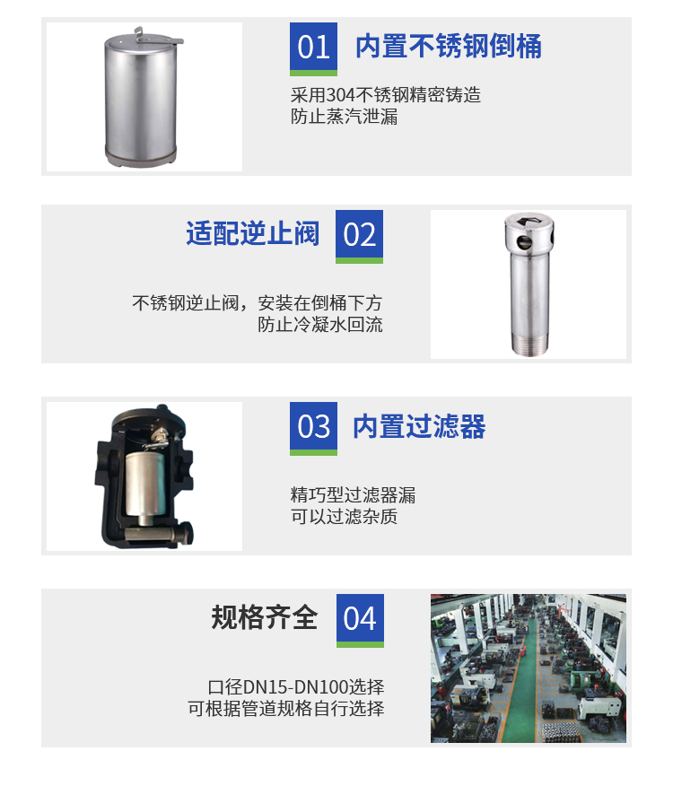 WK倒桶式疏水閥內置不銹鋼倒桶防止蒸汽泄漏,適配逆止閥,過濾器可以清晰過濾雜質不生銹。