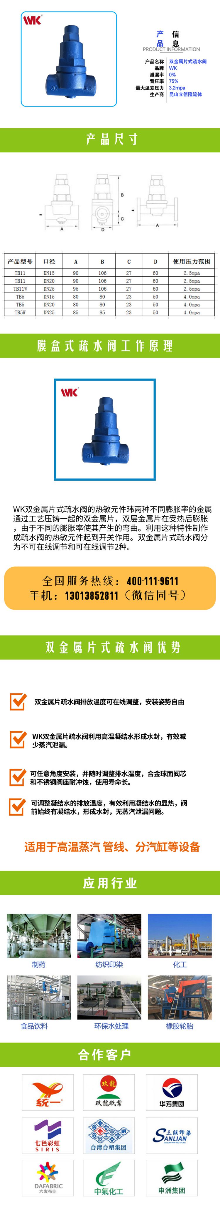 WK雙金屬片式疏水閥的熱敏元件瑋兩種不同膨脹率的金屬通過工藝壓鑄一起的雙金屬片,雙層金屬片在受熱后膨脹,由于不同的膨脹率使其產生的彎曲。利用這種特性制作成疏水閥的熱敏元件起到開關作用。雙金屬片式疏水閥分為不可在線調節和可在線調節2種。