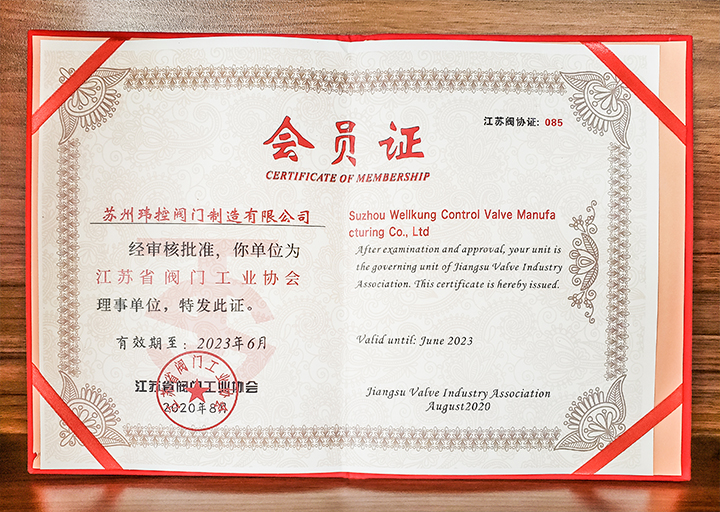 2020年8月,蘇州瑋控閥門制造有限公司正式升級,成為江蘇閥門工業協會理事單位,此次升級,代表著江蘇閥協對,蘇州瑋控閥門制造有限公司企業單位正規,企業管理規范,以及產品質量穩定的認可。